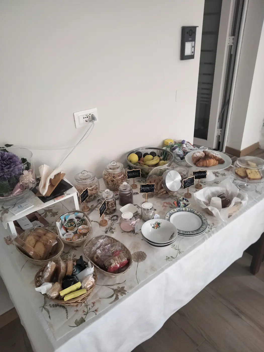 Dolci, frutta fresca e bevande calde: colazione all’italiana servita con cura e sorrisi.