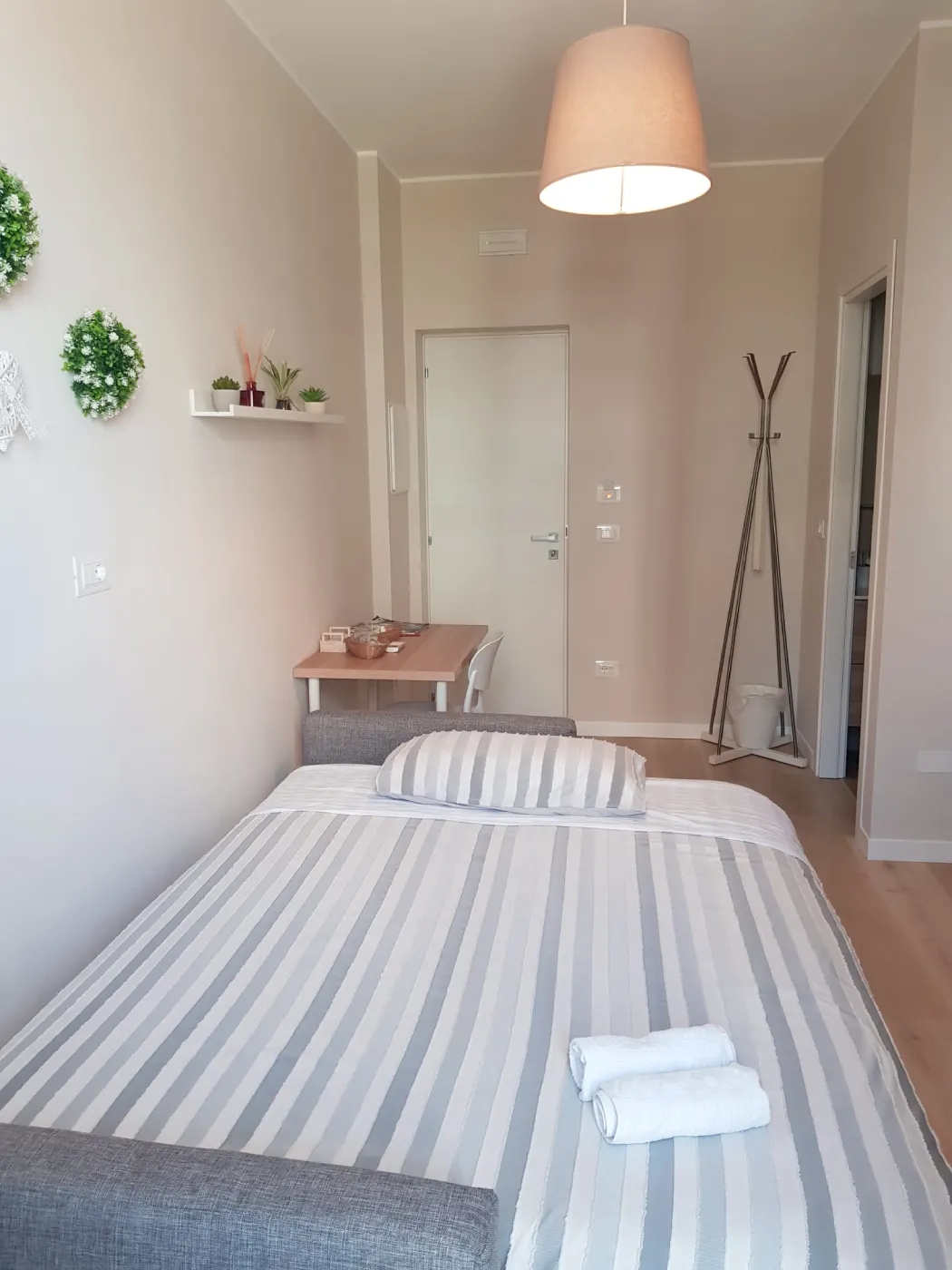 Stanza luminosa e accogliente, ideale per rilassarsi e sentirsi subito come a casa.